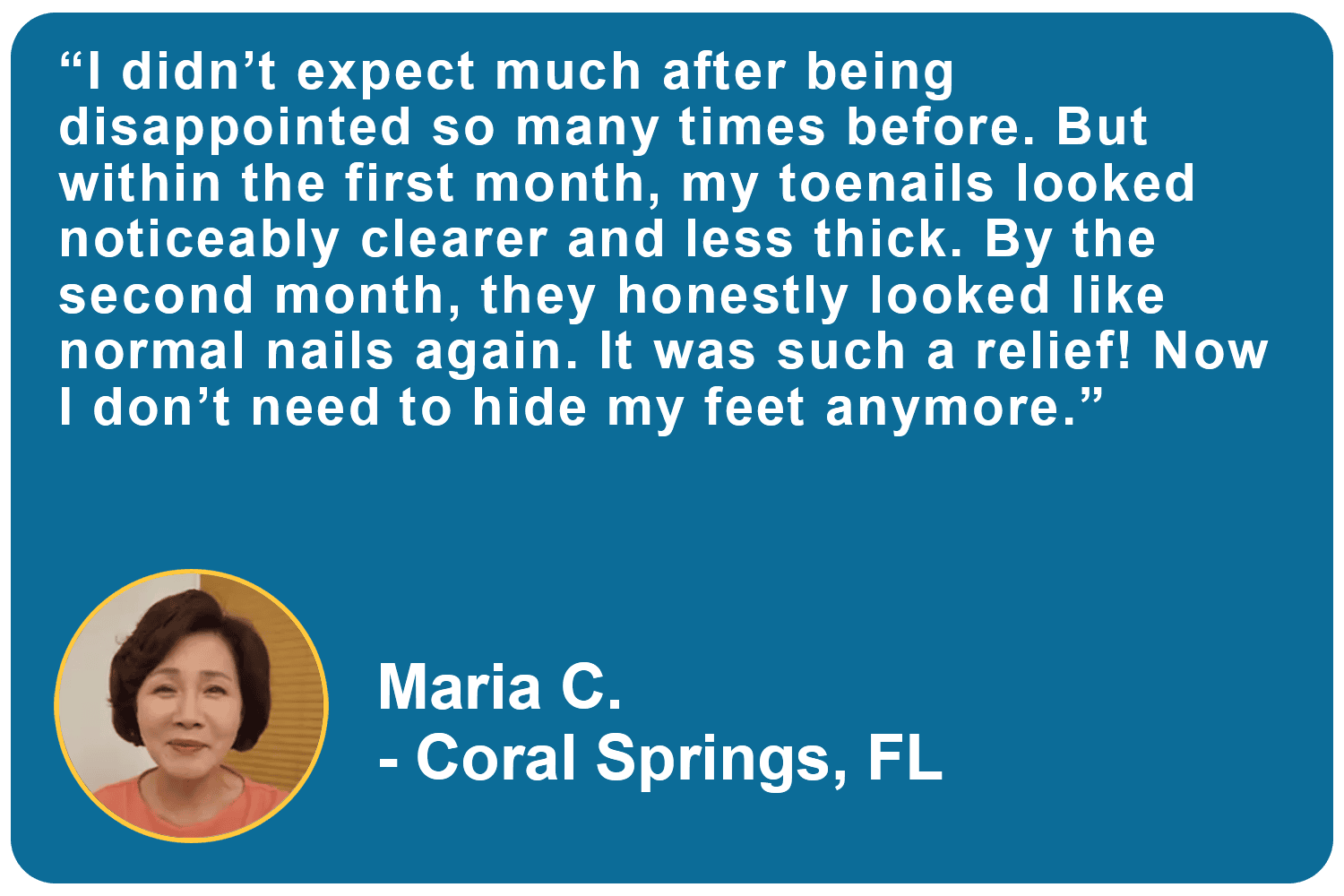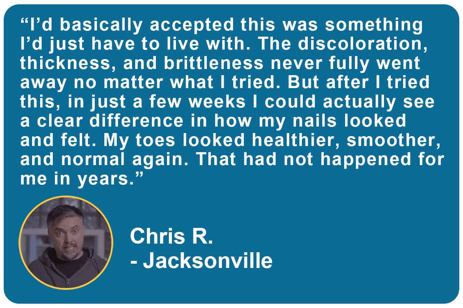 "I'd basically accepted that I'd just have to live with this forever. The discoloration and brittleness never went away no matter what I tried. After just a few weeks on Nail Refresh, I could see a clear difference. My toes felt healthier, looked smoother, and were normal again. That hadn't happened for me in years."